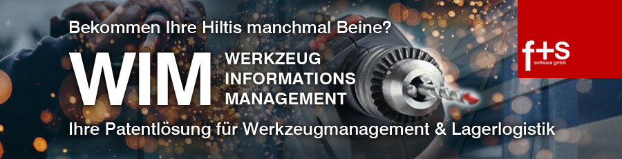 WIM Software, WerkzeugInformationsManagement, Software WIM, WIM Werkzeugverwaltung Software, Werkzeugverwaltung handwerk, Werkzeugverwaltung am besten, Werkzeugverwaltungsystem, Software Werkzeugverwaltung, einfache Werkzeugverwaltung, sichere Werkzeugverwaltung, Spezialisten für Werkzeugverwaltung, Software zur mobilen Datenerfassung für die Werkzeugverwaltung, Softwareentwickler Werkzeugverwaltung, Software Lagerlogistik, Softwareentwicklung Werkzeugverwaltung, individuelle Werkzeugverwaltung, Software für Werkzeugmanagement, Werkzeugverwaltungssoftware für betriebliche Anwendungen, Werkzeugmanagementsoftware, Werkzeugmanagement Software, Unternehmenslogistik, Überblick über Nutzungszeiten, Überblick über Bestände, Werkzeugverwaltung Nutzungsdauer, Werkzeugverwaltung organisierter Werkzeugkreislauf, Werkzeuge Kennzeichnen mit RFID-Chip, Maschinen Kennzeichnen mit RFID-Chip, Inventar Kennzeichnen mit RFID-Chip oder Barcode, unkomplizierte Werkzeugausgabe via Chipkarte, Werkzeugausgabe lückenlos buchen, Werkzeugrückgabe unkompliziert buchen, Werkzeugverwaltung für nachvollziehbare Lagerbestände, Reduktion von Geräteschwund und Abschreibungen, Werkzeuge stationär verwalten, Werkezuge mobil verwalten, Werkzeuge unterwegs verwalten, Werkzeugverwaltung Lager, Werkzeugverwaltung Arbeitsstätten, Werkzeugverwaltung Baustellen, Buchen Sie Werkzeuge vor Ort im Einsatz, Software iLoNa, iLoNa Lagerverwaltungssoftware, Nachschubsteuerung Software, NAchschubsteuerung für SAP, NAchschubsteuerung für Axapta, NAchschubsteuerung für Navision, NAchschubsteuerung für COMET, Frei konfigurierbare Lagerstruktur, Verwaltung unterschiedlicher Bestandsarten, Festlegbare Ein- und Auslagerungsstrategien, durchgängige Chargenverfolgung, Toolmanagement, Barcode, RFID, Lagersoftware, Lagerverwaltung, Programmierung Werkzeugmanagement, deutscher Anbieter, deutsche Programmierer, Deutschland, f+s software gmbh, Berlin, D-Berlin