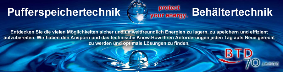 Protect your energy – Entdecken Sie die vielen Möglichkeiten sicher und umweltfreundlich Energien zu lagern und zu speichern. BTD hat den Ansporn Ihren Anforderungen jeden Tag aufs Neue gerecht zu werden und optimale Lösungen zu finden.